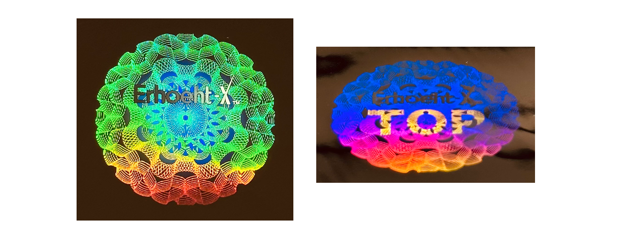 When the angle changes, so does the visible image. This is our changing hot stamp technology.