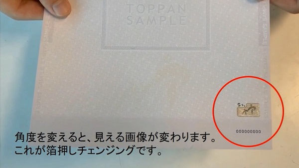 This hidden image effect is achieved using the special structure of Twilightgram™. Since achieving this special structure requires manufacturing technologies and processing precision that go beyond conventional holograms, it is highly effective for preventing counterfeiting.