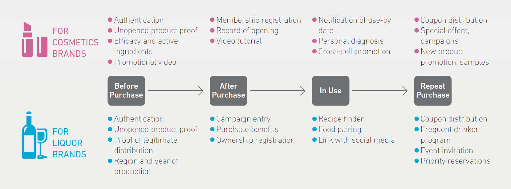 TOPPAN integrates an NFC tag into every product to give it a digital identity, which enables us to offer dynamic and wide-ranging digital services to brands and their customers.