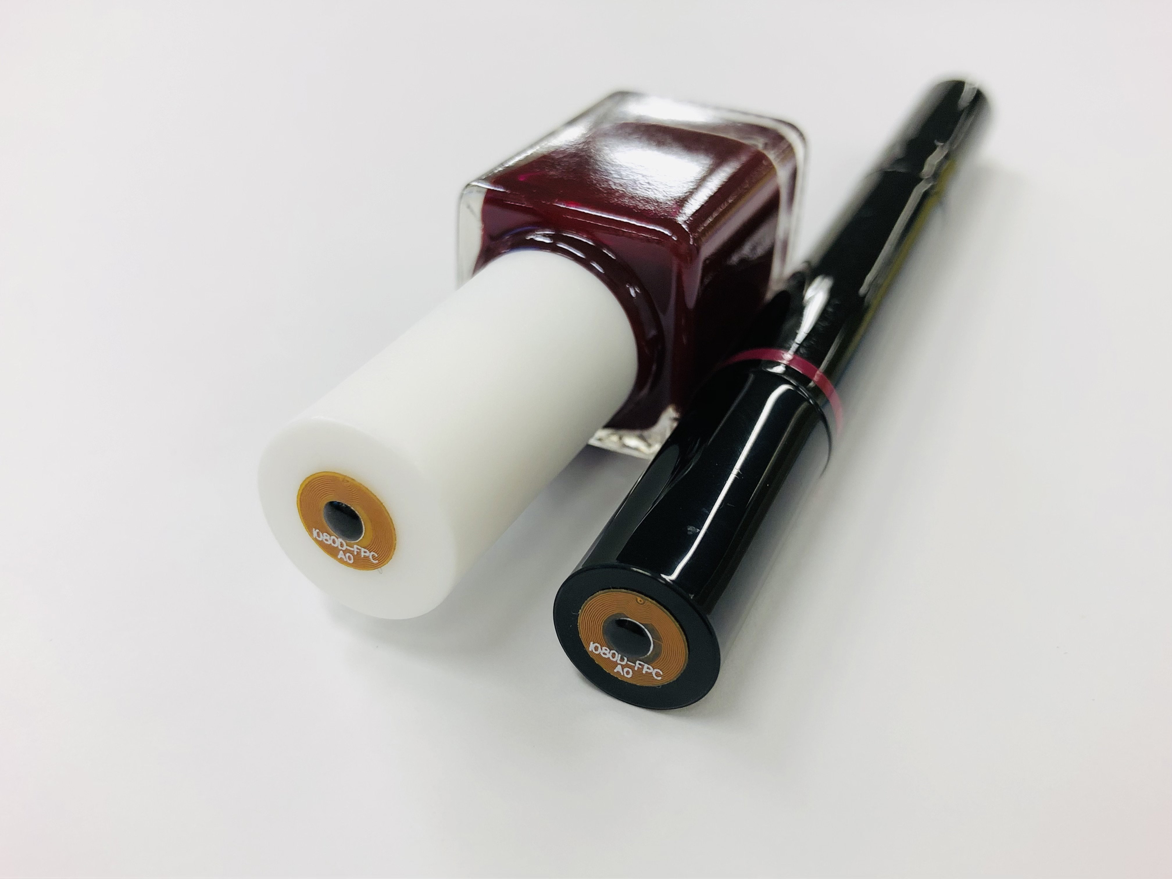 TOPPAN has developed two concept models: one with a diameter of 7 mm, and the other with a diameter of 8 mm. When reducing antenna size, it is normally difficult to maintain communication performance, however TOPPAN's original design ensures the same level of performance as conventional NFC tags in mini-sized tags that can be applied to compact containers.