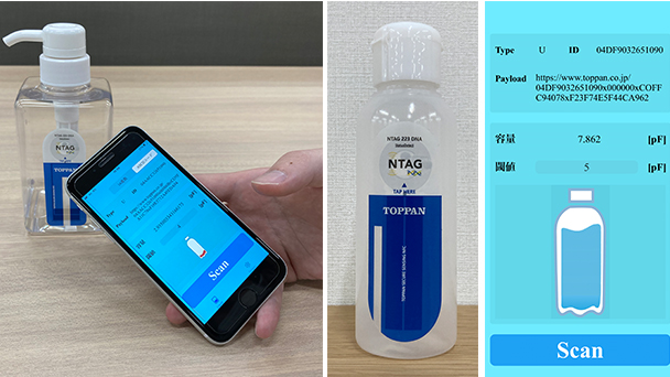 Users can read NFC tags using a smartphone to check liquid levels in bottles for cosmetics, pharmaceuticals, and more.