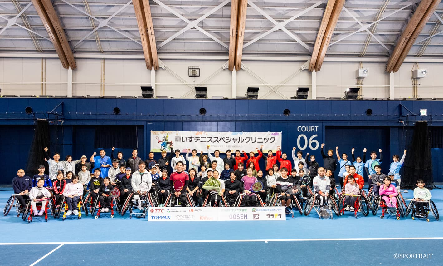 Our employee athlete Takashi Sanada (wheelchair tennis) initiated and held a special clinic for the development of next-generation athletes and the promotion of wheelchair tennis, featuring six top-ranked Japanese professional wheelchair tennis players.
