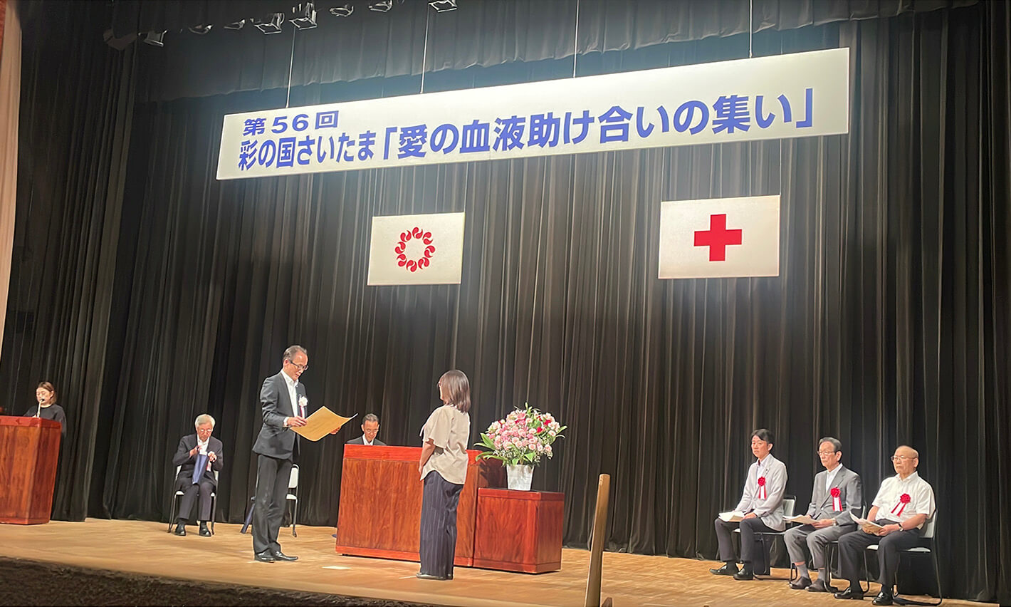 Awarded the “Blood Donation Merit Award” by the Japanese Red Cross Society for 50 years of continuous blood donation cooperation (Asaka Site, Saitama)