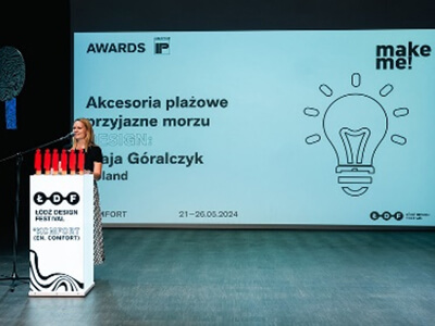 We have been part of the Łódź Design Festival for 17 years, supporting emerging talent and design that values sustainability. In 2024, we funded a special award in the Make me! competition for young designers. It was granted to the creator of eco-friendly beach accessories made from biomaterials—recycled mussel and oyster shells sourced from restaurants.