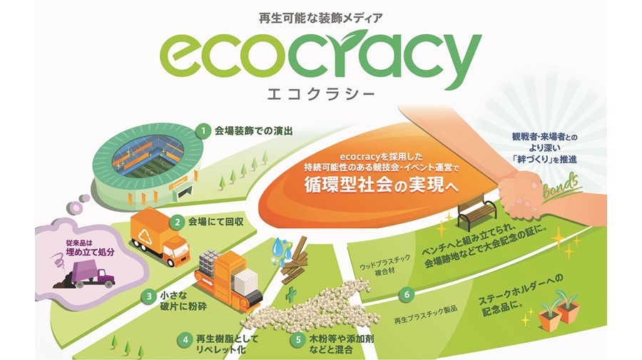 TOPPANホールディングスのグループ会社であるTOPPAN株式会社(本社:東京都文京区、代表取締役社長:野口 晴彦、以下 TOPPAN)は、単一のプラスチック素材のみを使用することで再資源化できる装飾幕「ecocracy®(読み:エコクラシー)」を軽量化し、環境負荷低減を強化して2026年4月より提供開始します。