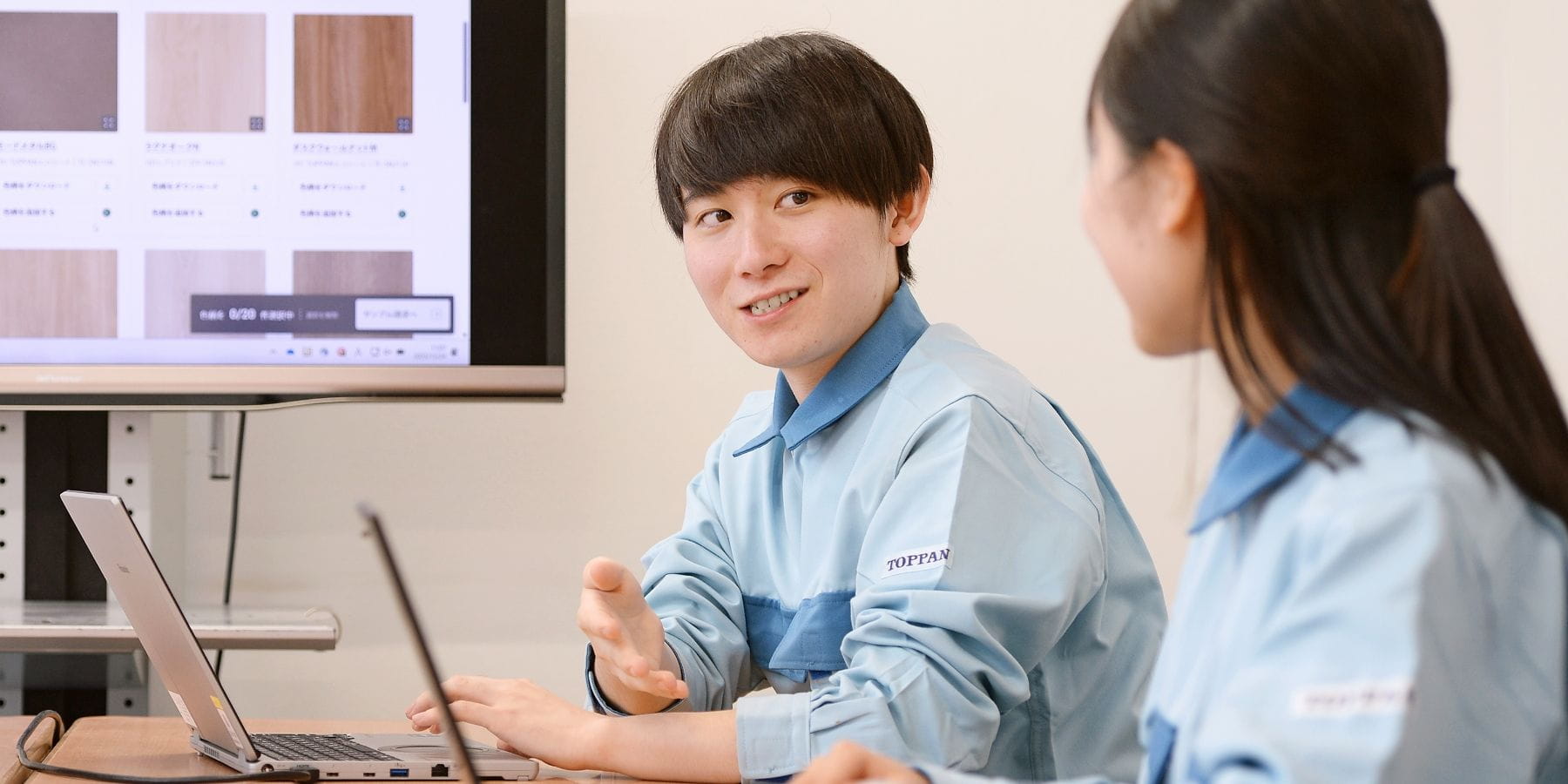 多品種の製品知識を深め、材料・工程・市場の視点を統合できる技術者を目指します。周囲から相談される存在となり、生活空間をより豊かにする建装材の創出に貢献していきます。