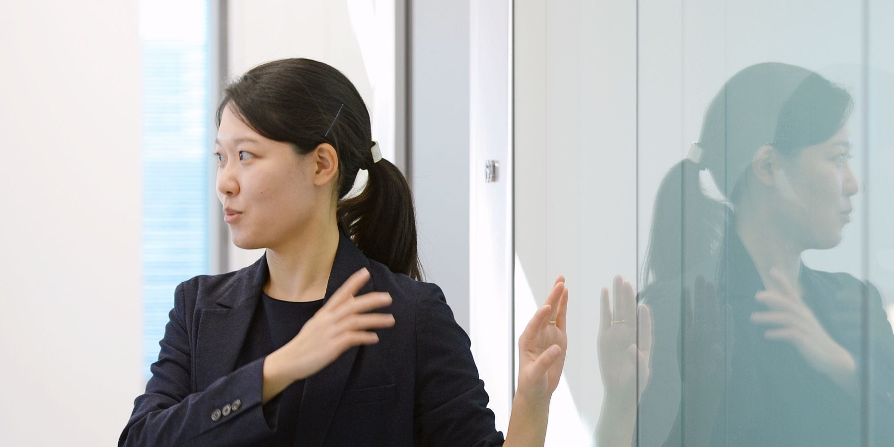 液晶調光フィルム「LC MAGIC」の営業を担当しています。電気のON/OFFで透明・不透明を瞬時に切り替えられる製品で、オフィスや車載用途、医療空間などで活用されています。