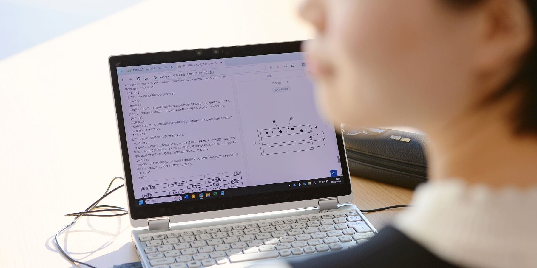 新規テーマの特許担当を任され、出願手続きだけでなく、将来取得すべき権利範囲の検討から関与しました。事業計画を踏まえ、どの技術をどのような権利範囲で権利化すべきかを整理しました。