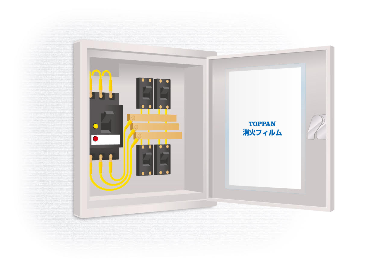 本产品被加工为轻量化的薄膜,节省了空间。它可被贴附在锂离子电池箱体内部、配电盘与分电盘的设备内部、插座盖内等有可能起火的地方。